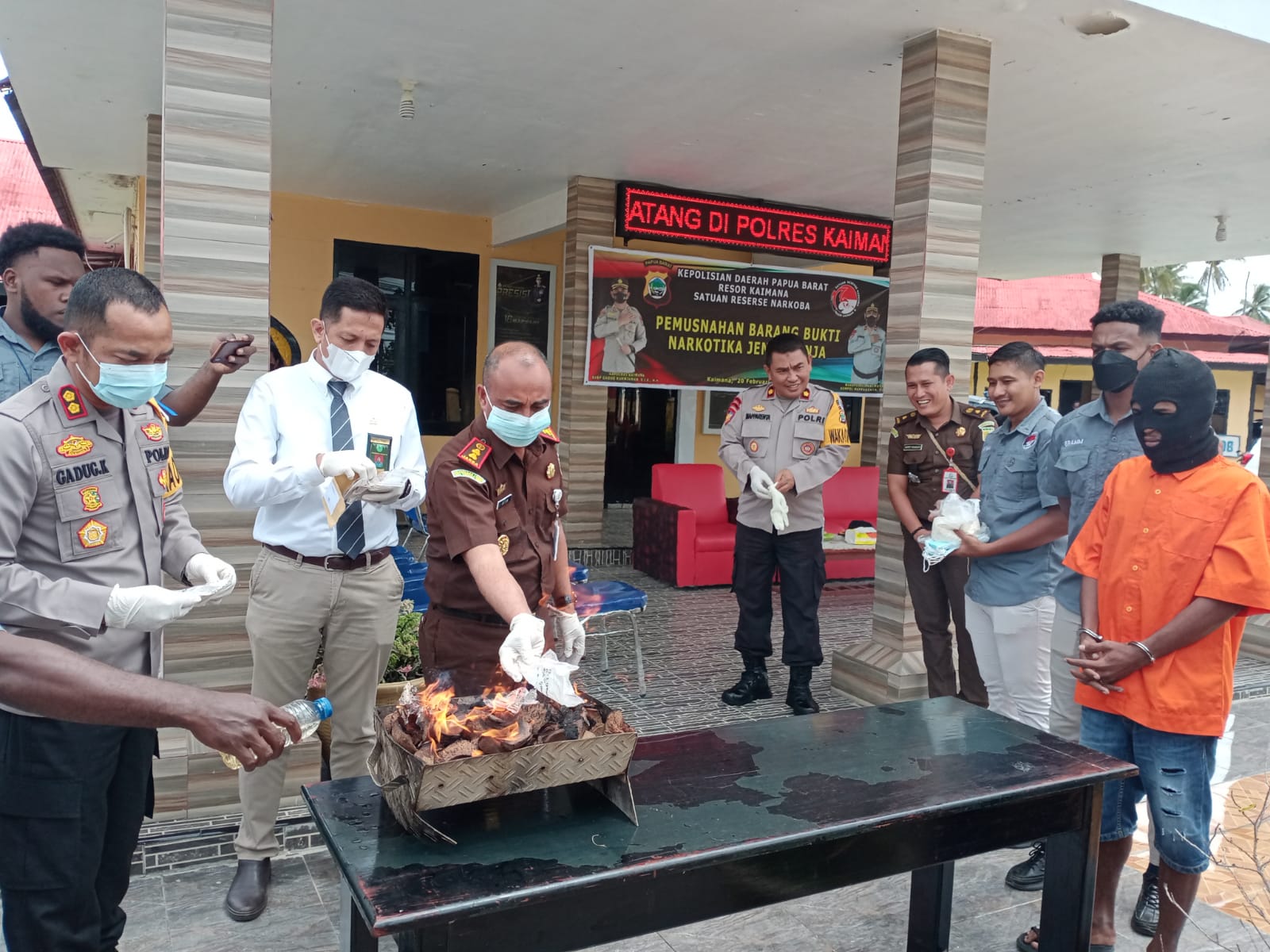 Pada hari Senin, 20 Februari 2023 pukul 11.30 WIT, bertempat di lapangan kantor Kepolisian Resor Kaimana, Kepala Kejaksaan Negeri Kaimana, Anton M. Londa, S.H., M.H. mengikuti kegiatan Pemusnahan Barang Bukti Narkotika jenis Ganjan an. Tersangka Oktovianus Johanes Sanadi.